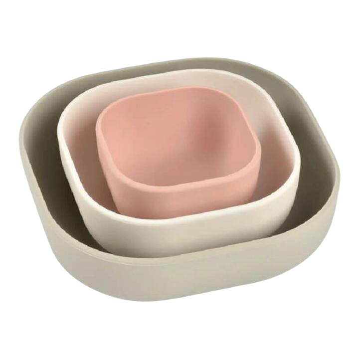 Beaba Silicone Stackable Bowls – Set of 3 – Velvet Grey / Cotton / Dusty Rose