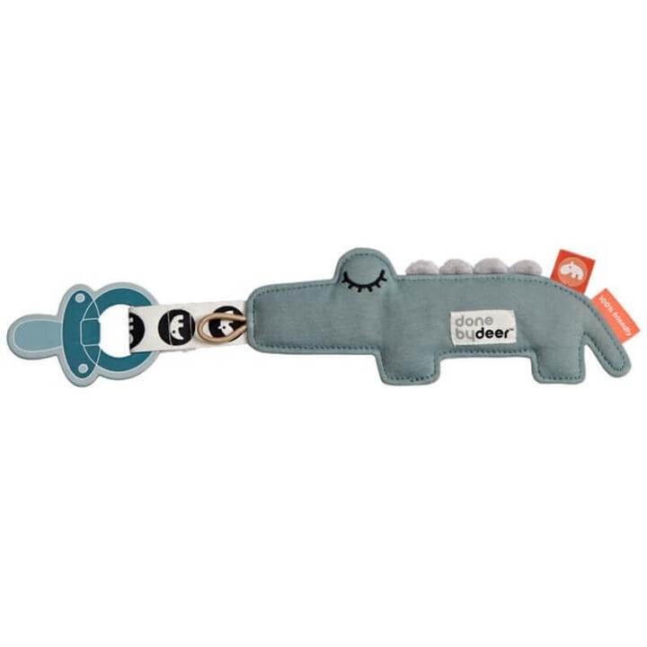 Croco keeps soothers close by and joins tiny sleepy heads when it’s time to head off to dreamland. The cutest little comforting companion in soft blue and with black happy dots
