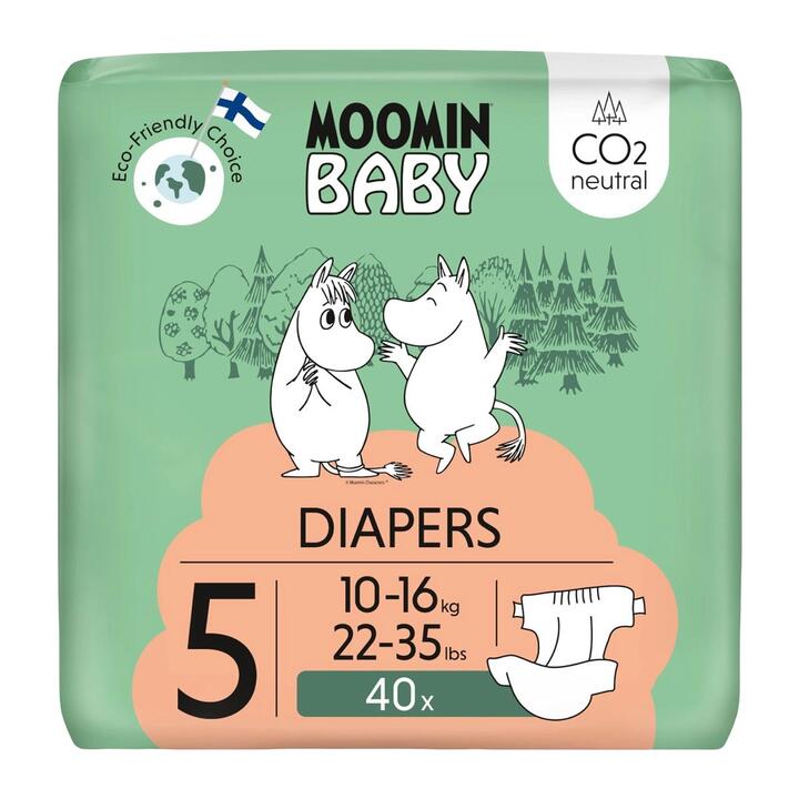 Skin-friendly and fragrance-free – No unnecessary chemicals, fragrances or creams in Moomin diapers. The certified wood pulp is bleached using an oxygen process without chlorine. Moomin diapers are researched and skin-safe for small, sensitive babies without glyphosates, latex, formaldehyde or phthalates – making them the best diapers for your precious baby